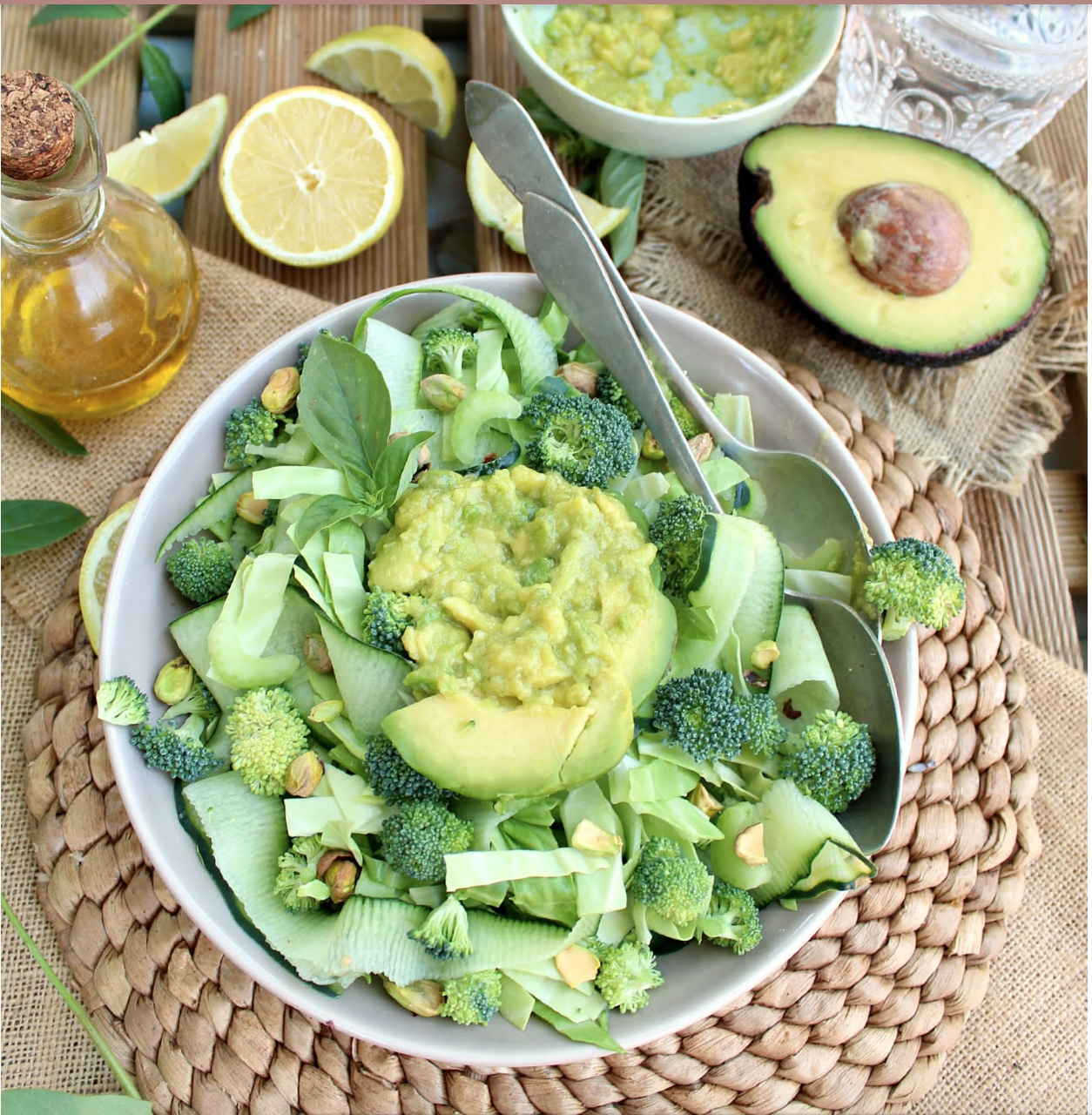 Screen Shot 2016-05-26 at 16.21.48 Lorsque vous voulez une salade toute fraîche et surtout toute verte et élégante, rien de mieux que cette salade d’été à la vinaigrette d’avocat. La fraîcheur du concombre marié au croquant du brocoli et des pistaches, du bonheur!